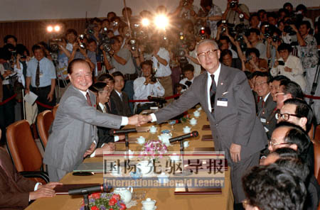 成立之初,可說(shuō)是兩會(huì)協(xié)商的小陽(yáng)春。海協(xié)會(huì)首任會(huì)長(zhǎng)汪道涵和;鶗(huì)首任董事長(zhǎng)辜振甫,不僅達(dá)成“九二共識(shí)”,還建立了兩會(huì)定期之制度化協(xié)商機(jī)制。新加坡、上海、北京,處處留下兩會(huì)協(xié)商的身影。但經(jīng)1996年臺(tái)海危機(jī)以及1999年的“兩國(guó)論”事件,兩會(huì)協(xié)商被臺(tái)灣當(dāng)局惡意中斷。2005年,辜汪二老先后辭世,留下永生的遺憾。