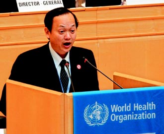 中新網(wǎng)5月20日電 臺灣“中央社”發(fā)自日內(nèi)瓦的報道稱,當?shù)貢r間19日下午,臺灣衛(wèi)生部門負責(zé)人葉金川首度在世界衛(wèi)生大會(WHA)全體會議上發(fā)言。