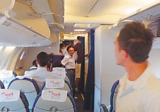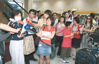 中新網(wǎng)6月15日電 上海航空原訂前天從上海直飛臺(tái)北松山的FM801班機(jī),因途中遇雷雨胞,機(jī)長(zhǎng)返航,延至昨天才抵達(dá),旅客被迫在上海多滯留一晚。飛機(jī)抵達(dá)松山后,八十名旅客憤不下機(jī),成為兩岸直航以來(lái)首宗“霸機(jī)”事件。