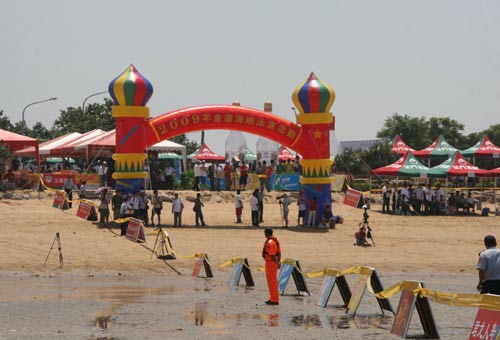 中新網(wǎng)8月15日電 2009廈金海峽泳渡活動(dòng)今天登場(chǎng),兩岸98名泳士從廈門下水,穿過禁限制水域,在小金門雙口海灘上岸,完成歷史性的海泳之旅。