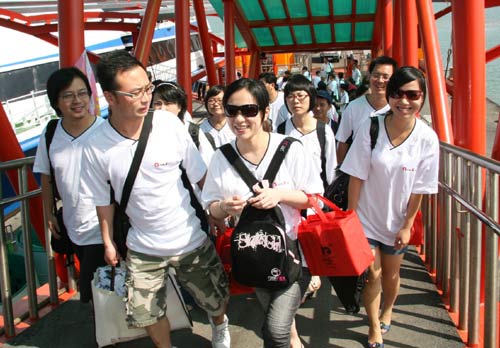 中新網(wǎng)8月26日電 今天是七夕情人節(jié),200多名廈門男女青年組團(tuán),以“小三通”為鵲橋,飄洋過海到金門,參加海峽兩岸七夕牽手會活動,尋覓有情人。