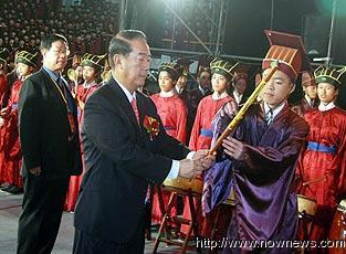 這場兩岸師生聯(lián)合祭孔大典盛會,有來自于山東的76名師生、北京的103名師生,臺灣部份,則有來自臺灣新竹教育界代表、忠信學(xué)校5600余名師生、2000余名在學(xué)學(xué)生家長,以及3000余名忠信畢業(yè)學(xué)生的參與,這也是近60年來,臺灣民間祭孔最大的一次集會。