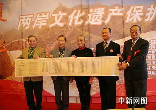 中新網(wǎng)11月9日電 (吉翔)由中國華夏文化遺產(chǎn)基金會主辦的首屆海峽兩岸文化遺產(chǎn)保護論壇9日在北京開幕,多名國共高級將領后代發(fā)表了兩岸文化遺產(chǎn)保護的共同宣言,以召開展兩岸民間文化遺產(chǎn)保護領域的實體性合作。