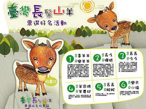 據(jù)介紹,臺(tái)北市立動(dòng)物園會(huì)從6月1日起,在梅花鹿與長鬃山羊展場(chǎng)前,設(shè)1個(gè)月的“最后命名票選活動(dòng)”,動(dòng)物園也為游客準(zhǔn)備精美投票折頁,除了投下神圣一票,只要?jiǎng)觿?dòng)手,就可以將折頁上的可愛梅花鹿與長鬃山羊,變成立體卡片帶回家收藏。