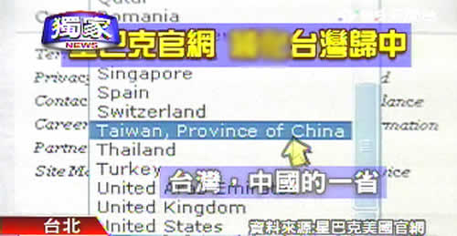 報(bào)道稱,上美國星巴克網(wǎng)站搜索在臺灣的分店,不管在高雄、新竹、嘉義還是臺北的分店,都加注了一排字“TAIWAN,PROVICE OF CHINA”(臺灣,中國的一省)。
