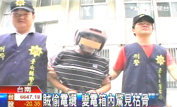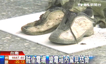 據(jù)臺灣TVBS電視臺報(bào)道,臺南縣一名小偷潛入歇業(yè)的工廠偷電纜,意外發(fā)現(xiàn)變電器箱里竟有一具白骨。據(jù)臺灣警察分析,死者可能是要偷電纜意外觸電,死亡時(shí)間超過2年;發(fā)現(xiàn)白骨的竊賊,也因?yàn)榱粼诂F(xiàn)場,通緝犯身份曝光,被帶回警局。