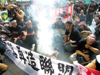 “88水災(zāi)”高雄縣少數(shù)民族部落再造聯(lián)盟,不滿“88水災(zāi)”已過(guò)百日,重災(zāi)區(qū)那瑪夏鄉(xiāng)、桃源鄉(xiāng)仍有1千多人,因道路、橋梁中斷,還回不了家,縣政府執(zhí)意把災(zāi)民遷村到杉林鄉(xiāng)月眉地區(qū),遠(yuǎn)離少數(shù)民族的故鄉(xiāng)和祖靈,昨天上午與六龜鄉(xiāng)新開(kāi)部落溫泉區(qū)居民,一起游行到縣府抗議。