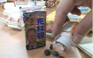 桃園縣衛(wèi)生局與警方稽查在公園販賣(mài)藥品的路邊攤,共查獲29種、339盒壯陽(yáng)藥,其中兩種壯陽(yáng)藥包裝最為夸張,一款稱“克林頓”,另一款“金功夫”則以李連杰為噱頭;這些藥品皆未經(jīng)臺(tái)“衛(wèi)生署”核可,并驗(yàn)出可能致死禁藥,警方將業(yè)者移送法辦。