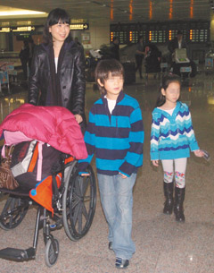 中新網(wǎng)1月21日電 據(jù)臺(tái)灣《聯(lián)合報(bào)》報(bào)道,國(guó)民黨秘書長(zhǎng)金溥聰?shù)钠拮又芑坻门c一雙兒女結(jié)束5個(gè)月的華盛頓之旅,20日清晨返抵臺(tái)灣。由于周慧婷之前才摔傷,一路上還得照料2個(gè)也都受傷的孩子,一到桃園機(jī)場(chǎng),周慧婷帶著孩子上車走了,讓趕來(lái)接機(jī)的金溥聰撲了空。這對(duì)糊涂夫妻還得靠記者幫忙傳話,連周慧婷也笑說(shuō):“我不知道他要來(lái)接,他可能是想給我驚喜。”
