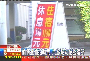 警方查出,嫌犯可以任意在汽車旅館房間內,安裝針孔攝影機,懷疑和旅館人員勾結,內神通外鬼,提供被害人車號,嫌犯再拿著偷拍光碟,向當事人勒索30萬元,因此不排除有監(jiān)理站人員或是警察,配合查汽車車主資料,外泄給偷拍嫌犯,用來恐嚇取財。