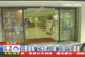 中新網(wǎng)2月2日電 據(jù)臺(tái)灣TVBS報(bào)道,臺(tái)北市龍江路上的永豐銀行,下午發(fā)生搶案,一名女子從銀行走出來(lái),隨即被歹徒盯上搶走約167萬(wàn)元。