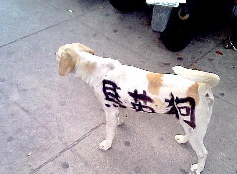 中新網(wǎng)4月14日電 據(jù)TVBS報道,臺灣政治戰(zhàn)火延燒到流浪狗身上,臺中中港轉運站前幾天出現(xiàn)一只白底黃花的流浪狗,狗身上被人用黑色噴漆寫了“馬英狗”三個字,民眾感覺有人把對政治的不滿,發(fā)泄在狗身上,實在很不人道,如果碰到護馬人士,這只狗啟不是要遭殃。