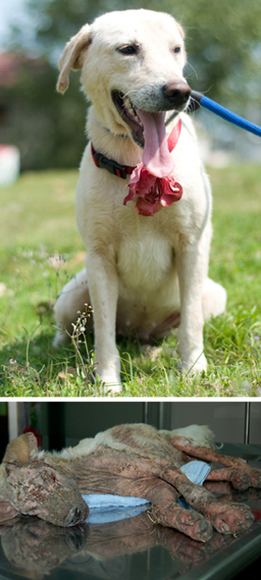 救援小組元月初據(jù)報,在高雄市楠梓區(qū)旗楠路一處果園救援1只“幾乎沒有臉的狗”。倪兆成說,它罹患嚴重的皮膚病,全身潰爛流膿,毛掉光,左眼失明,奄奄一息。送動物醫(yī)院急救輸血,半個月后才脫離險境,取名“Melody”。