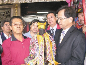 中新網(wǎng)4月16日電 據(jù)臺(tái)灣《聯(lián)合報(bào)》報(bào)道,臺(tái)南縣學(xué)甲慈濟(jì)宮開基保生二大帝安南巡禮活動(dòng),昨天上午由縣長蘇煥智與慈濟(jì)宮董事長周尚德扶轎起駕,駐蹕臺(tái)南市安南區(qū)中洲寮保安宮,今天上午6時(shí)出發(fā)繞境。