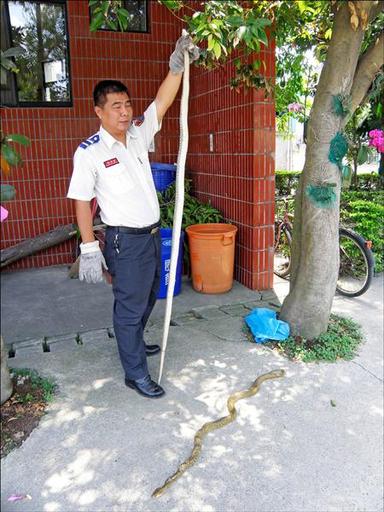 中新網(wǎng)5月19日電 據(jù)臺(tái)灣媒體報(bào)道,大蛇吃小蛇,消防人員前晚捕捉2米長(zhǎng)的臭青母時(shí),它竟吐出肚中1米長(zhǎng)的小臭青母,“抓一條送一條”十分罕見(jiàn)。