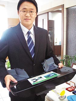 他的第一件發(fā)明作品“濾油功能盤”,為他贏得海外肯定,前年獲韓國首爾國際發(fā)明展金牌、去年獲得馬來西亞發(fā)明展銀牌。他笑說,一開始是因?yàn)橛^察媽媽煮菜,總會在菜盤下方墊湯匙,好讓菜汁流到盤子另一頭,他就發(fā)想何不讓盤子變聰明?于是發(fā)明改良一款傾斜式盤子,食物盛在高處,湯汁順勢流到低處,吃東西即可避免吃到“油水”。