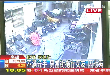 中新網6月24日電 據臺灣TVBS報道,高雄有一名男子,因為不滿同居女友打算帶著孩子要求分手,竟然持棍棒追打、拖行女友,過程全都被監(jiān)視器錄下。