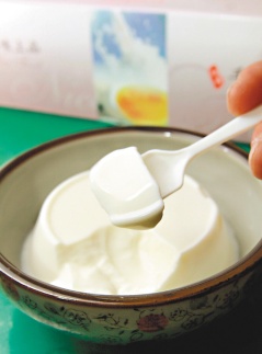 “吃起來(lái)很順口,有點(diǎn)彈性,入口涼涼的,不會(huì)很甜!绷纸ê甏蜷_(kāi)自家奶酪,吃了一口發(fā)出贊美,又吃了口自家水蒸蛋糕,“綿綿密密,很細(xì)膩”,表情陶醉又自信。