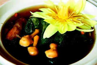 劉邦傳說,新興園的烏骨雞湯和一般雞湯不同,以蓮蓬、蓮子等堅(jiān)果類食材清燉,加上巴西蘑菇,營養(yǎng)程度高。