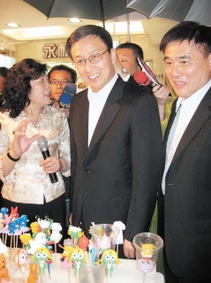 可能是晚宴都還沒消化,韓正來到夜市并未品嘗任何小吃,只有喝了一小杯茶葉攤商的奉茶,夜市內(nèi)一家藝品店老板戴忠泉送給韓正一只石刻作品,象征“時時好運(yùn)、節(jié)節(jié)高升”,郝龍斌在旁強(qiáng)調(diào)“臺北市民就是這么熱情”,韓正笑著回應(yīng)說:“全都感受到了!”