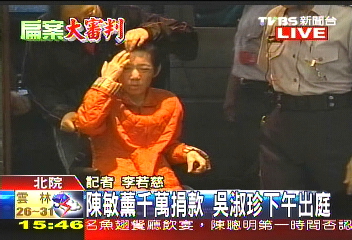 扁珍涉嫌收受陳敏熏1000萬(wàn)元,以及前中信金控副董事長(zhǎng)辜仲諒給款3億元,特偵組認(rèn)為兩人涉犯貪污治罪條例與政治獻(xiàn)金法等相關(guān)規(guī)定,因此追加起訴。吳淑珍4日出席準(zhǔn)備庭時(shí)否認(rèn)收賄、圖利,但坦承違反“政治獻(xiàn)金法”,并聲請(qǐng)傳喚與林全、馬永成對(duì)質(zhì)。