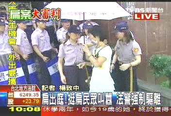部分陳水扁支持者提出抗議,因為旁聽的名額有限,支持者被擋在外面,不能進(jìn)去旁聽,因此不斷叫囂,高喊著“沒有天理”等話語,一度和法警發(fā)生推擠、爭吵,但隨即遭到法警強(qiáng)制驅(qū)離。
