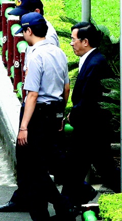 審判長蔡守訓(xùn)上午與扁的唯一交鋒,只在詢問陳水扁對于合議庭決定詰問證人順序有無意見上,扁聞訊態(tài)度堅決不語,即無表情,也不回答,審判長見狀,習(xí)慣的跳過扁,然后問檢、辯和公設(shè)辯護人的意見。