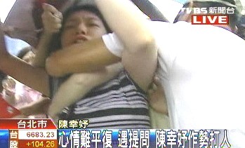 陳幸妤連日來傳出因為遭限制出境,無法赴美進(jìn)修而心情不穩(wěn),見到媒體提問,對于陳水扁寫信向馬英九陳情,陳幸妤聽完問題后,變的激動情緒崩潰,更一度沖向記者,作勢要拍打媒體鏡頭。