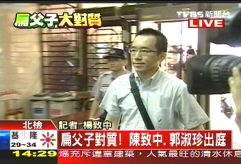 陳致中昨天出庭時(shí),對(duì)審判長(zhǎng)蔡守訓(xùn)的訊問(wèn)有問(wèn)必答,但神情略顯緊張。連蔡守訓(xùn)都看出來(lái),還問(wèn)他是不是很緊張。