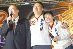 桃園縣政治世家以吳伯雄(左)為代表,其子吳志揚(中)有意角逐桃園縣長,繼承父親衣缽。 臺灣中國時報圖