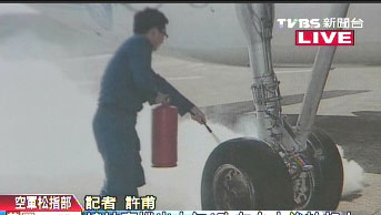 臺(tái)空軍司令部上午也表示,該專機(jī)落地滑行時(shí),“右主輪癟氣起火”。