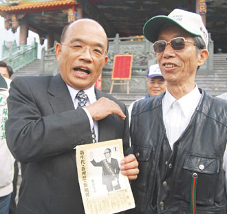 據(jù)臺(tái)灣聯(lián)合報(bào)報(bào)道,蘇貞昌應(yīng)邀,到宜蘭縣為民進(jìn)黨候選人輔選。蘇貞昌到場(chǎng)時(shí),曾任宜蘭青商會(huì)常務(wù)監(jiān)事的林阿山更拿出30年前蘇貞昌參選全臺(tái)青商總會(huì)會(huì)長(zhǎng),到宜蘭爭(zhēng)取支持時(shí)發(fā)的老文宣,向蘇要簽名。