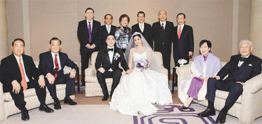 這場(chǎng)在臺(tái)北君悅飯店舉行的婚宴晚間6時(shí)入席,黑頭車(chē)整晚川流不息,媒體的閃光燈也閃個(gè)不停。