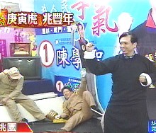中新網(wǎng)2月21日電 據(jù)臺灣TVBS報道,國民黨“立委”參選人陳學圣自認和香港影星甄子丹有幾分神似,他特別穿馬褂扮演功夫大師葉問,動手和助理比劃拳腳,雖然動作超慢,卻差點把自己的人形廣告牌“撂倒”。