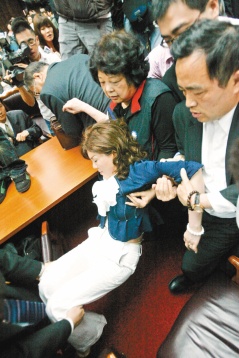 趙麗云昨天緊急送往臺(tái)大醫(yī)院,包括馬英九、吳敦義、“立法院長”王金平、“教育部長”吳清基都前往探視。“行政院長”吳敦義也譴責(zé)“國會(huì)”暴力,呼吁民進(jìn)黨道歉,不要硬拗。