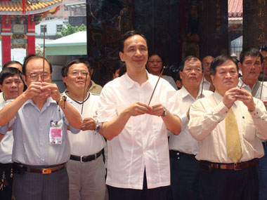 據(jù)悉,朱立倫19日上午在中和市長邱垂益及地方民代陪同下,到舊居住樓下面包店、照相館等商家拜訪,沿路拜票到里民活動中心,都獲老鄰居們歡迎,讓他直呼感動。隨后,到福和宮、廣濟(jì)宮上香,祈求能順利當(dāng)選。