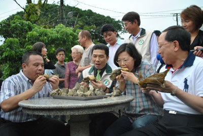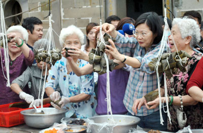 一邊品嘗著粽子,蔡英文表示,雖然第一次到貢寮龍門村,但開車常經(jīng)過,而小時(shí)候父親每年夏天都會招待員工到福隆海水浴場游泳,她對這里感覺很親切,并承諾若當(dāng)選新北市長,明年端午節(jié)還要來龍門包粽子。