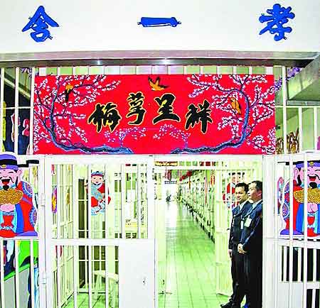 盡管陳水扁不能與家人圍爐,但濃濃的年節(jié)味也讓臺(tái)北看守所好不熱鬧。最近,每間舍房處處張燈結(jié)彩,每層樓舍房門(mén)口都是成串的手工紙鞭炮及年節(jié)擺飾,有些舍房還貼滿許愿紙,希望來(lái)年能重新做人早點(diǎn)返家。