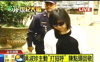 吳淑珍今天下午再次前往臺北地院出庭,并會針對機(jī)要費(fèi)案與前“總統(tǒng)府”出納陳鎮(zhèn)慧對質(zhì),扁辦秘書江志銘稍早表示,吳淑珍今天上午都在休息而為下午的庭訊做準(zhǔn)備,至于即將與陳鎮(zhèn)慧對質(zhì),吳淑珍的心情平靜,被稱“一切都按照平常心以及在法庭上的應(yīng)對,平常心處理”。