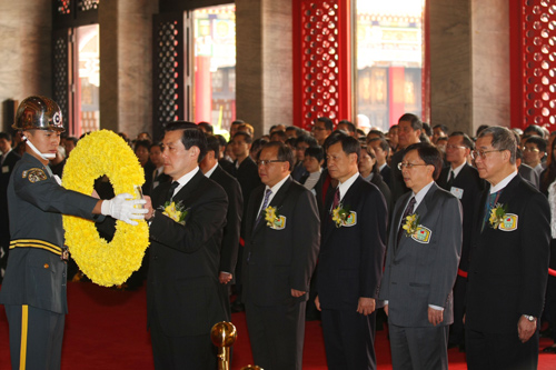 清明節(jié)將屆,“中樞遙祭黃帝陵典禮”上午在圓山忠烈祠舉行,馬英九親率文武百官參與,遵循上香、獻(xiàn)花、三鞠躬禮等儀式,遙祭黃帝陵,“行政院長”劉兆玄、“司法院長”賴英照等出席陪祭,典禮莊嚴(yán)肅穆。