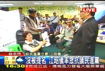 中新網(wǎng)4月15日電 據(jù)臺(tái)灣TVBS報(bào)道,民進(jìn)黨前“立委”江昭儀不滿民進(jìn)黨彰化縣長(zhǎng)選舉的提名作業(yè),15日下午率眾到民進(jìn)黨中央抗議。