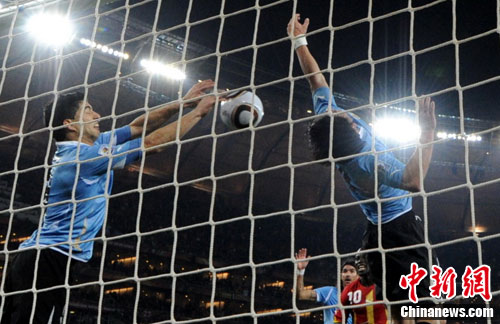 中新網(wǎng)7月3日電 在今天凌晨進(jìn)行的一場世界杯1/4決賽中,烏拉圭點球淘汰加納,40年后再度晉級四強。而在加時賽中場階段用一個“排球動作”幫助球隊擋出加納隊射門、被紅牌罰下的蘇亞雷斯,堪稱最大功臣。
