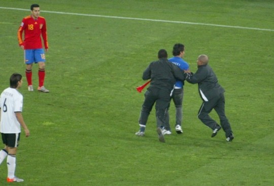 中新網(wǎng)7月8日電 世界杯安保問題在遇挑戰(zhàn),在北京時間8日凌晨進行的德國和西班牙的半決賽中,一名球迷竟然沖入球場,導(dǎo)致比賽被迫中斷。
