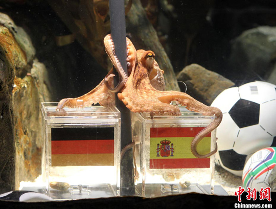 世界杯開賽后,來自德國的章魚“保羅”已經(jīng)成功預測對了此前德國隊五場比賽的勝負結果,頓時名聲大振。半決賽前,德國人再次請出“保羅”預測,這次“保羅”預測的是西班牙獲勝。沒想到,它又對了!
