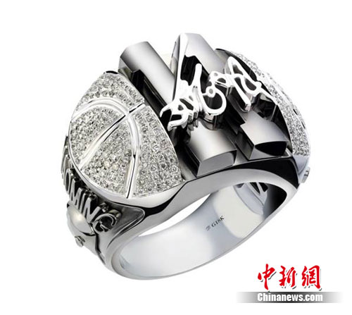 這枚姚明版“至尊鉆戒”的表面是籃球紋樣點綴的晶瑩的鉆石,中部用黑金凸起的色塊寫就姚明在休斯頓火箭隊的隊服號碼,其上再鐫刻姚明名字的手寫體,筆力瀟灑遒勁,戒指側面還有姚明的頭像和英文的YaoMing字樣。整個戒指共鑲嵌鉆石248顆,通體莊嚴厚重,對比鮮明,展現出無比的王者之氣,象征著姚明在中國乃至國際籃球界的崇高威望和領袖氣質。