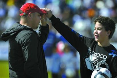 在北京時(shí)間今天凌晨進(jìn)行的這場(chǎng)慈善賽上,不僅云集了梅西、德科和卡雷卡等球星,羅納爾多也帶著自己的兒子前來(lái)助陣。而讓人眼前一亮的是,小羅納爾多的長(zhǎng)相和他老爸就像是一個(gè)模子里刻出來(lái)的一樣,完全就是一個(gè)少年版的大羅,就是不知道他是否也克隆了他老爸的足球天賦。