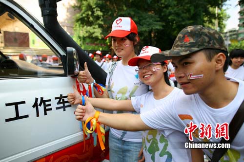 從8月3日開(kāi)始,主辦方將在廣州20個(gè)“V風(fēng)驛站”向廣大車主免費(fèi)派發(fā)“V風(fēng)車貼”和“V風(fēng)彩帶”,派發(fā)總數(shù)達(dá)近百萬(wàn)。屆時(shí),2000名V風(fēng)行動(dòng)志愿者將穿志愿服、戴“志愿彩”、行“志愿禮”,進(jìn)駐各大“V風(fēng)驛站”,親手為志愿車主貼車貼、掛彩帶。