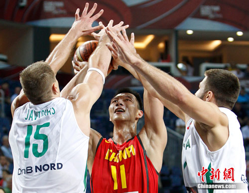 中新社北京9月8日電 伊斯坦布爾消息:領(lǐng)先前15分鐘比賽的中國(guó)隊(duì)未能笑到最后,掌控后25分鐘比賽的立陶宛隊(duì)晉級(jí)世錦賽八強(qiáng)。北京時(shí)間9月8日凌晨結(jié)束的土耳其男籃世錦賽八分之一淘汰賽中,中國(guó)隊(duì)67比78不敵歐洲勁旅立陶宛隊(duì),無(wú)緣八強(qiáng)。