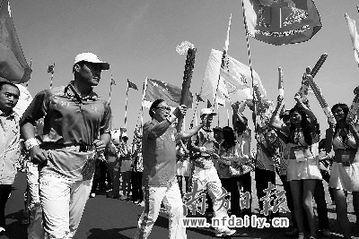 從9點(diǎn)至12點(diǎn),經(jīng)過208名火炬手手手相傳,亞運(yùn)圣火經(jīng)過越秀公園、解放路、海珠廣場(chǎng)、濱江路、閱江路。盡管羊城百姓觀火熱情高漲,但昨天火炬?zhèn)鬟f的整體運(yùn)行平穩(wěn),“潮流”圣火只比原計(jì)劃晚了10分鐘,最終于12時(shí)10分在廣州國(guó)際會(huì)展中心舉行收火儀式。