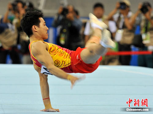 中新網(wǎng)11月15日電 在15日下午剛剛結(jié)束的廣州亞運(yùn)會(huì)體操男子全能決賽中,中國(guó)選手滕海濱表現(xiàn)完美,在六個(gè)單項(xiàng)比賽中一路領(lǐng)先并最終以91.100分的高分獲得金牌,這也是中國(guó)隊(duì)在亞運(yùn)會(huì)體操男子個(gè)人全能項(xiàng)目上的“九連冠”。